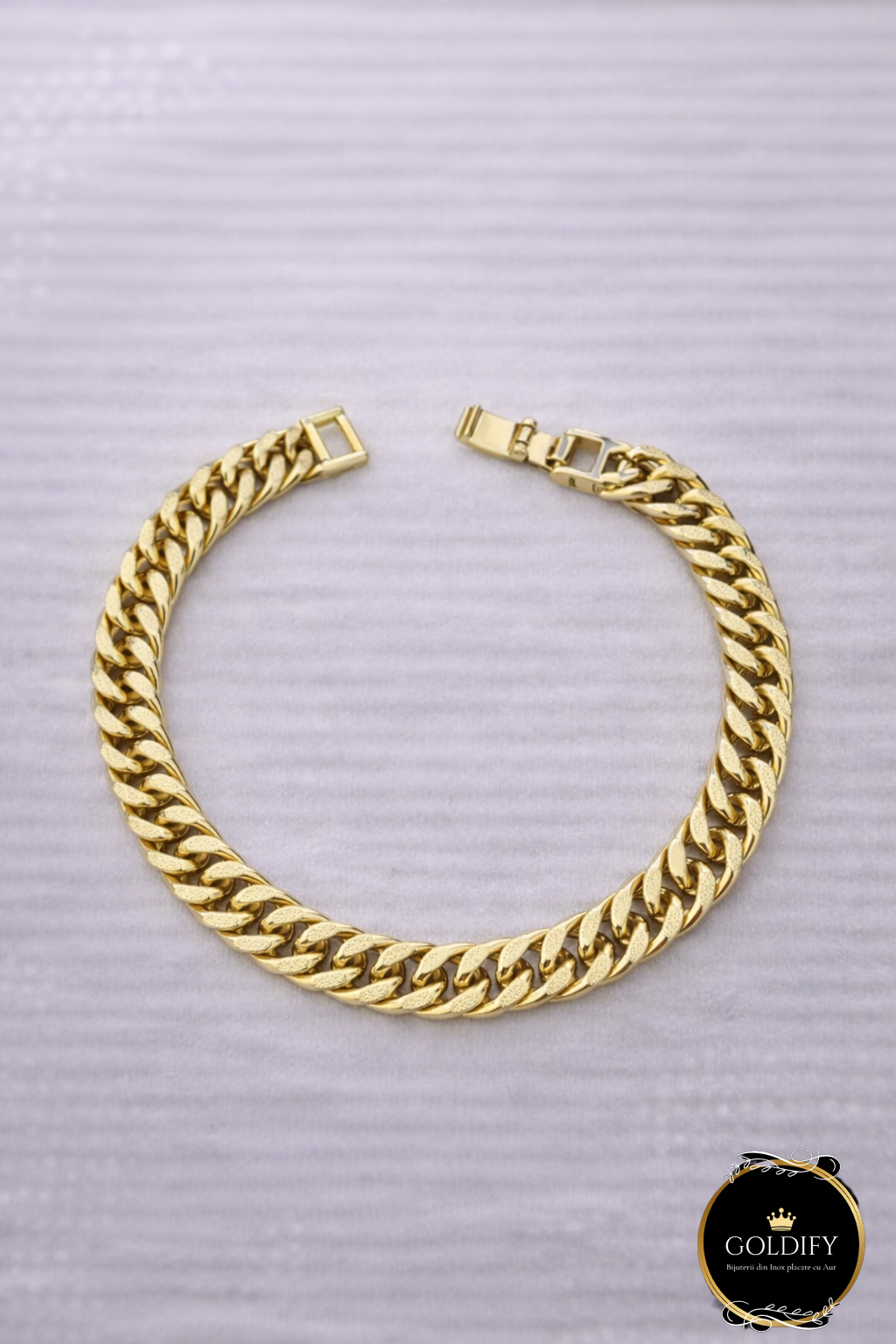 Bratara tip Cuban din Otel Inoxidabil placata cu Aur 525%