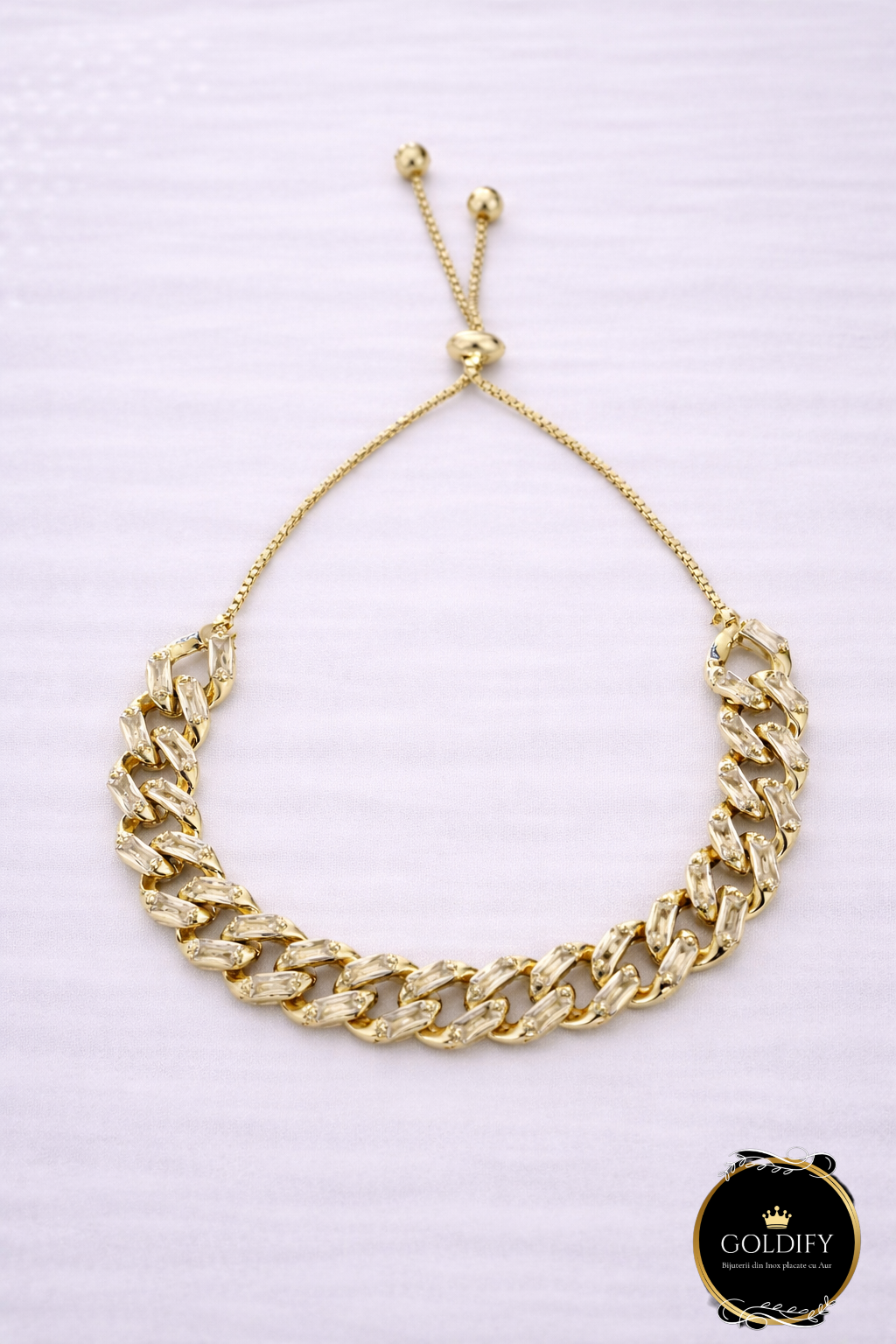 Bratara reglabila tip Cuban din Otel Inoxidabil placata cu Aur 525%