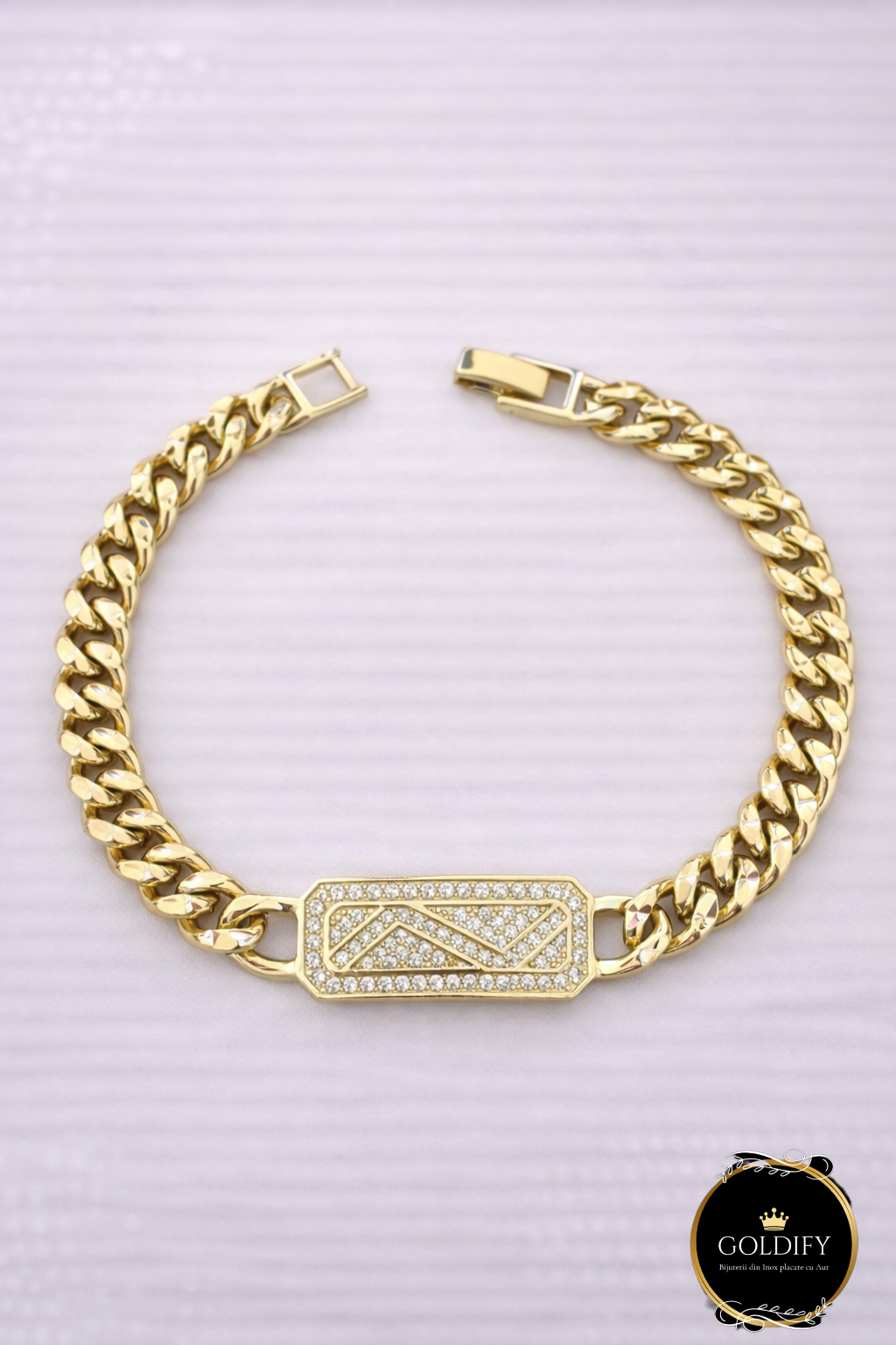 Bratara tip Cuban din Otel Inoxidabil placata cu Aur 525%