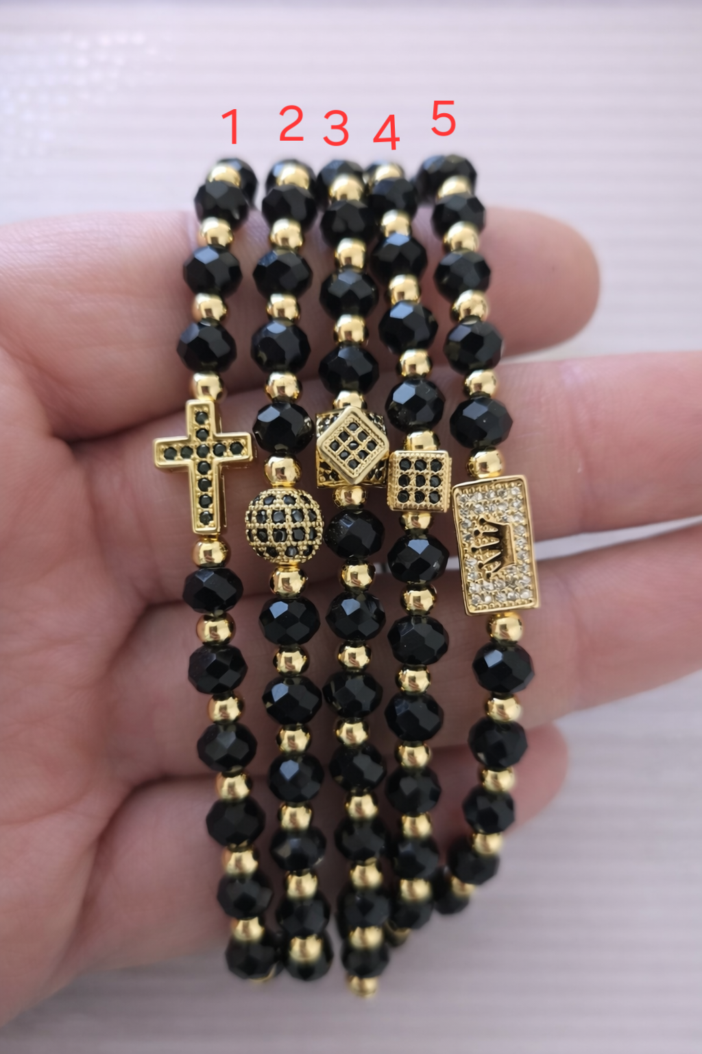 Bratari Inox si Zirconia Negre placate cu Aur - B024