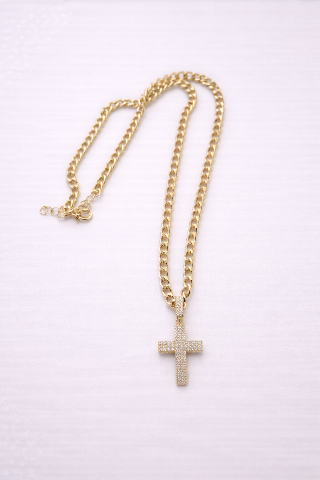 Lant + Pandant Cruce din Otel Inoxidabil placat cu Aur 525%